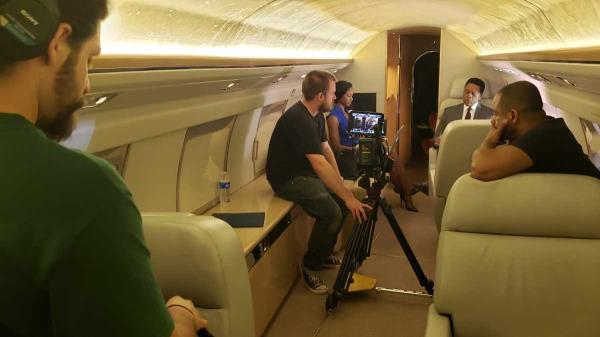 - The jet aircraft for filming is complete with galley and executive lavatory