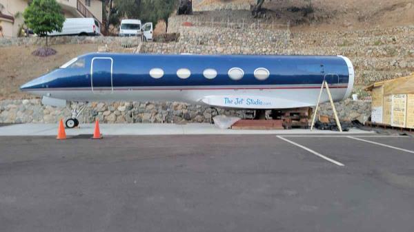 Our mid-size executive jet set was originally an operational Gulfstream “G3” jet; now with wings and tail removed, the complete fuselage (including cockpit) is a "ready to shoot" standing set at The Villa Serena.